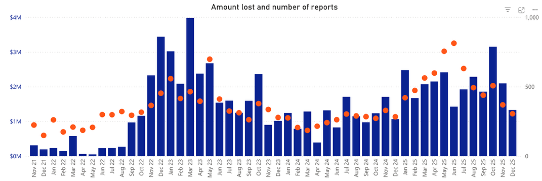 Statistically, the rise of these scams over the past year is cause for concern, particularly given the current macroeconomic climate and the impact on younger demographics. Job scams have resulted in $24.8 million total losses in 2025, with Figure 2 demonstrating a weak but noteworthy positive correlation with inflation post Aug-22. This implies that perhaps individuals are more prone to scams in financially precarious circumstances, or that scammers are simply more active during these periods. There was also a sharp rise in how many young Australians fell victim to job scams, with the number of people aged 24 or younger affected more than doubling since 2024, from 361 to 837, and losses totalling over $2.2 million.